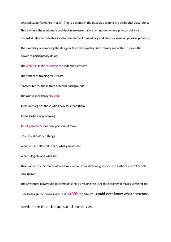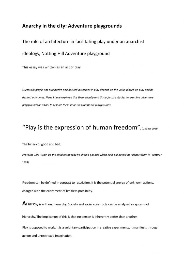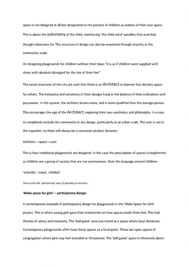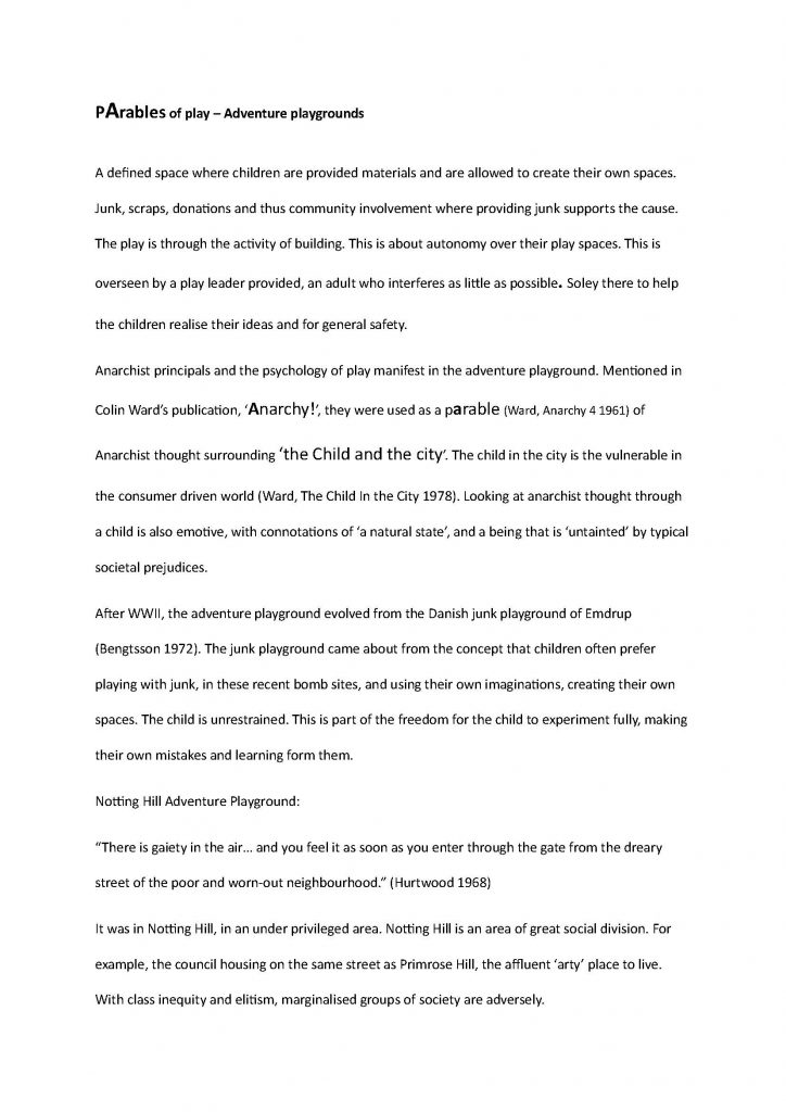 My final essay of my architecture degree at Queen’s Belfast was an essay examining the adventure playground through anarchist ideology.